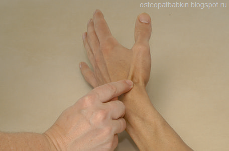 Рис. Пальпация трапециевидной кости в активном тесте.
