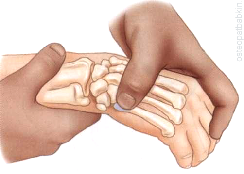 Рис. Пальпация головчатой кости (os capitatum) в активном тесте.